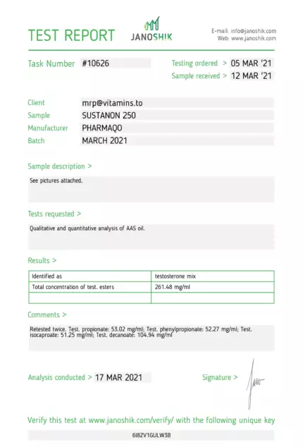 “Sustanon 250 from Pharmaqo Labs is a renowned anabolic steroid known for boosting muscle growth and enhancing performance. This complex formula combines four testosterone estersu2014Testosterone Propionate, Phenylpropionate, Isocaproate, and Decanoateu2014delivering both immediate and sustained testosterone release, beneficial for varied training needs.rnrnKey Benefits of Sustanon:rnrn tMuscle Growth: Significantly enhances muscle mass and strength by increasing testosterone levels.rn tPerformance Enhancement: Improves overall athletic performance, allowing for longer, more intense training sessions.rn tRecovery: Speeds up recovery times, facilitating more frequent and effective workouts.rn tProtein Synthesis and Nitrogen Retention: Promotes muscle repair and growth, essential for ongoing muscle development.rnrnUsage Recommendations:rnrn tDosage: Beginners should start at 250-500mg per week, while experienced users may opt for 500-1000mg.rn tCycle Duration: Typically lasts 8-12 weeks.rn tAdministration: Weekly injections are recommended to maintain stable hormone levels.rnrnComparing Testosterone Esters:rnrn tTestosterone Propionate: Requires frequent injections due to a short half-life (2-3 days).rn tTestosterone Enanthate and Cypionate: Longer half-lives (4-5 days and 7-8 days, respectively) mean fewer injections and a more stable release.rnrnSide Effects:rnrn tCommon issues include water retention, gynecomastia, acne, increased body hair, mood swings, and high blood pressure.rn tAdherence to recommended doses, estrogen level management, and a healthy lifestyle are crucial.rnrnStacking Options:rnrn tTrenbolone: For increased muscle mass and strength.rn tAnavar: For lean muscle growth and fat loss.rn tDeca Durabolin: For muscle mass and joint health enhancement.rnrnItu2019s essential to restore natural testosterone production with common drugs. HCG, Clomid, and Nolvadex are all recommended post-cycle therapy medications.rnrn*Disclaimer*rnThe use of Sustanon 250 demands careful consideration and adherence to recommended dosages and cycles to mitigate potential health risks. It is strongly advised to consult a healthcare provider before beginning Sustanon 250u00a0or any new supplement regimen.”
