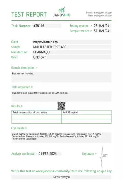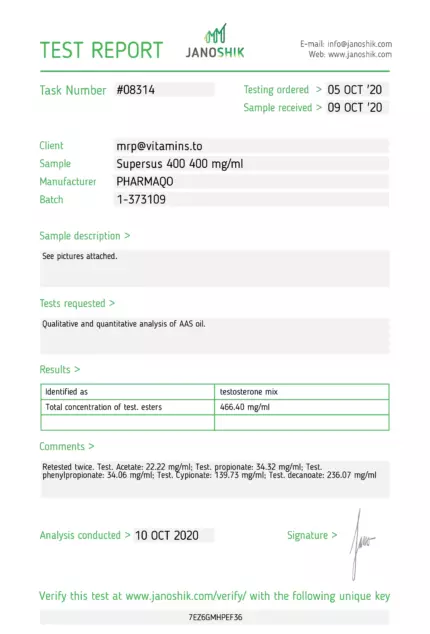 “Supersus 400 by Pharmaqo Labs is a sophisticated blend of five testosterone esters, each chosen for their specific release rates, ensuring a balanced and sustained testosterone delivery. This product is ideal for bodybuilders and fitness enthusiasts aiming for muscle growth and enhanced performance. The esters include:rnrn tTestosterone Acetate: Fast-acting, with a 1-2 day half-life for rapid strength and muscle gains.rn tTestosterone Propionate: Quick testosterone increase with a 2-3 day half-life, supporting lean muscle development.rn tTestosterone Phenylpropionate: Moderate 4-5 day half-life for steady muscle growth and strength.rn tTestosterone Cypionate: Longer 8-10 day half-life for stable testosterone release and prolonged anabolic effects.rn tTestosterone Decanoate: Longest half-life at approximately 15 days, ensuring extended testosterone release for consistent muscle gains.rnrnThese esters work synergistically for continuous testosterone release, maximizing bodybuilding results. Be mindful of the following dosage and administration guidelines when using Supersus 400.u00a0rnrn tBeginners: 600 mg per week.rn tExperienced users: 800-1000 mg per week.rn tCycle length: 10-14 weeks, with injections once or twice weekly.rnrnSupersus 400 can be stacked with other steroids like Winstrol for cutting or Deca-Durabolin for bulking, enhancing effects while being mindful of potential side effects. Common side effects include acne, oily skin, and increased aggression, with ancillary medications like aromatase inhibitors recommended to manage them.rnrnPost Cycle Therapy (PCT) is essential, starting 2-3 weeks after the last injection with medications like Nolvadex and Clomid to restore hormone levels and minimize side effects.rnrnBuy Supersus 400 from reliable sources only to avoid adverse reactions. A well-balanced diet and structured training program, alongside sufficient rest, are also vital for maximizing benefits and minimizing risks. Supersus 400 supports significant muscle gains and overall performance enhancement when used responsibly.rnrn*Disclaimer*rnThe use of Supersus 400 demands careful consideration and adherence to recommended dosages and cycles to mitigate potential health risks. It is strongly advised to consult a healthcare provider before beginning Supersus 400u00a0or any new supplement regimen.”