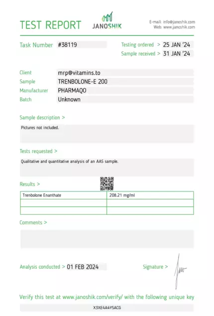 “Boost your physical capabilities with Trenbolone E 200 from Pharmaqo Labs, a powerful injectable anabolic steroid renowned for its significant impact on muscle growth and strength. Opt for this esterified variant of the potent trenbolone hormone for superior long-term enhancements in both bodybuilding and athletic performance.rnAbout Trenbolone EnanthaternTrenbolone Enanthate traces its origins back to the 1960s when trenbolone was first developed. The addition of the enanthate ester has improved the hormone’s half-life, making it a staple in the regimes of athletes and bodybuilders for sustained performance improvements.rnKey Benefitsrnrn tEnhanced Muscle Mass and Strength: Drastically increases muscle size and strength.rn tImproved Athletic Performance: Elevates your overall athletic capabilities.rn tAccelerated Recovery Time: Reduces downtime between intense workouts.rn tIncreased Nitrogen Retention and Protein Synthesis: Facilitates greater muscle growth and repair.rnrnHow Trenbolone Enanthate WorksrnTrenbolone Enanthate effectively binds to androgen receptors, which increases protein synthesis and nitrogen retention in muscle cells. These processes are crucial for enhancing muscle growth and optimising performance.rnrnA brief explanation of Trenbolone Enanthate as an anabolic steroidrnrnImportance of PCTrnTrenbolone Enanthate Stacking OptionsrnCommon steroids combined with Trenbolone Enanthate:rnrnTestosteronernDianabolrnAnavarrnBenefits of stacking Trenbolone Enanthate with other compoundsrnrnStacking Trenabolone Enanthate with other steroids can enhance muscle growth and performance while potentially reducing side effects.rnDisclaimerrnrn tAdjust dosages as necessary, ensuring careful monitoring of the body’s response.rn tMaintain hydration and follow a balanced diet to support overall well-being.rn tDue to its potent androgenic effects, Trenbolone Enanthate is generally not recommended for women.u00a0rnrnTrenbolone Enanthate should be used with care and responsibility. Always consult with a healthcare professional before initiating any new supplement regimen, and closely monitor your health throughout its use.rnrnExplore the powerful benefits of Trenbolone E 200 from Pharmaqo Labs, designed for serious athletes and bodybuilders aiming for top-tier performance and rapid muscle gains.”